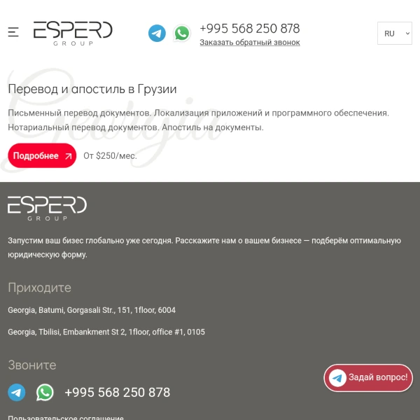Я искренне благодарен компании Espero за их поддержку и экспертизу в оформлении моего ИП в Грузии.